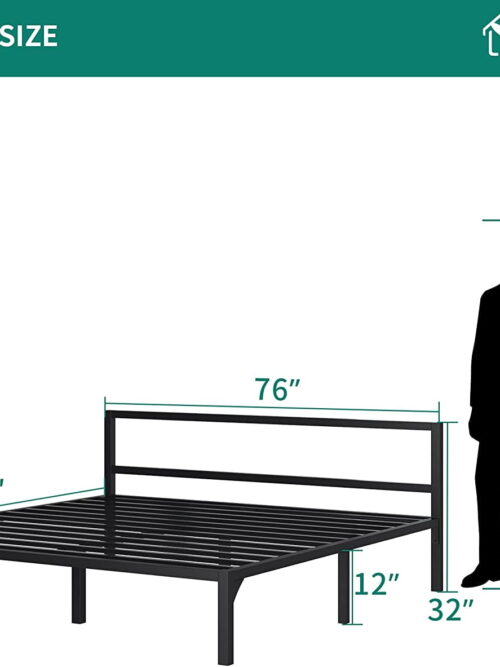 Dextrus King Size Bed Frame with Headboard/14 inch Platform/No Box Spring Needed