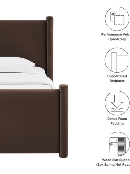 • Modway Rael Performance Velvet Twin Platform Bed in Chocolate Brown