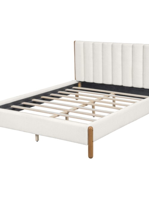 • Christopher Knight Home Modern Boucle Queen Bed Frame, Vertical Stripe Headboard, Solid Wood, White
