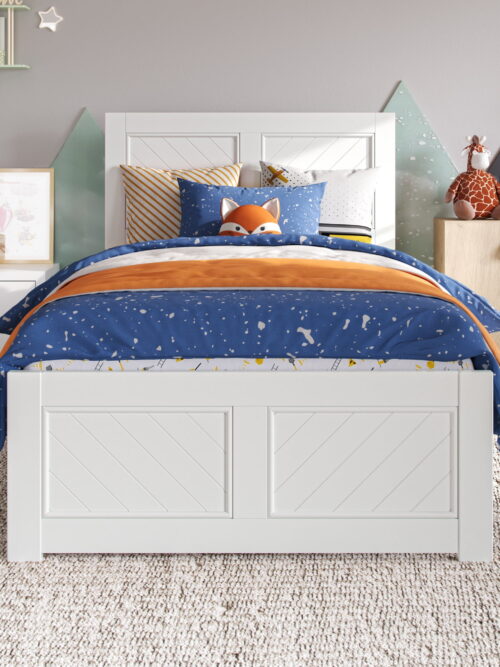 • AFI Berkshire Twin Wood Low Profile Platform Bed with Matching Footboard, White