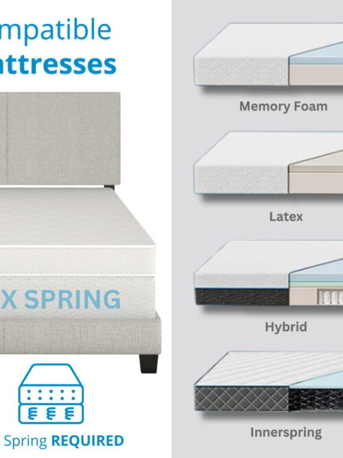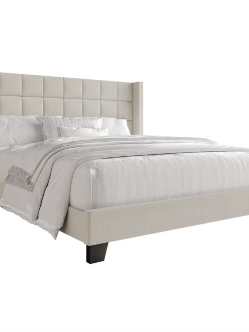• Boyd Sleep Milan Off White Linen Full Size Fully Upholstered Platform Bed Frame with Headboard, Qualified Box Spring or Foundation Required for Use