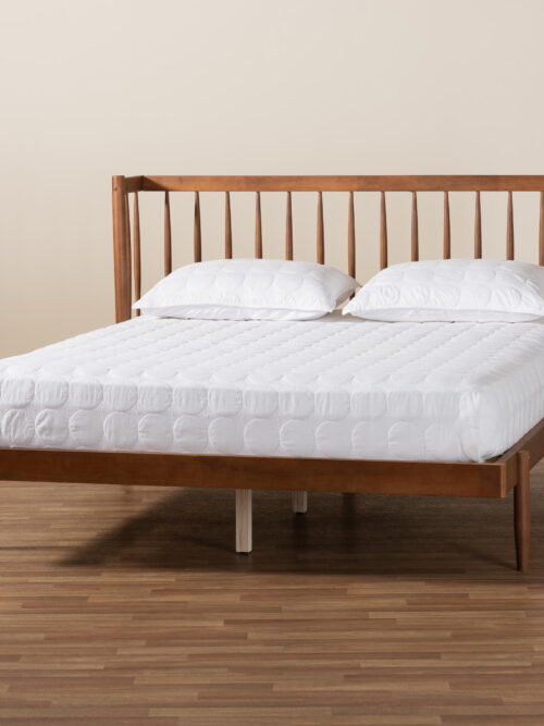 • Baxton Studio Sarita Mid-Century Modern Ash Walnut Finished Wood Queen Size Bed Frame