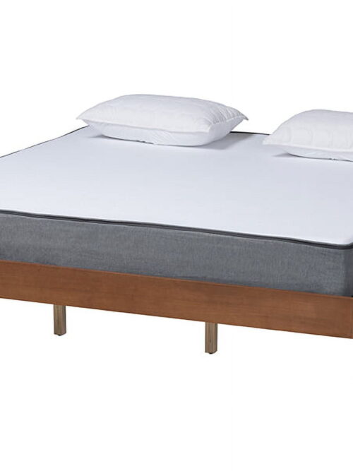 Baxton Studio Calderon Retro-Modern Platform Bed, Queen, Walnut Brown