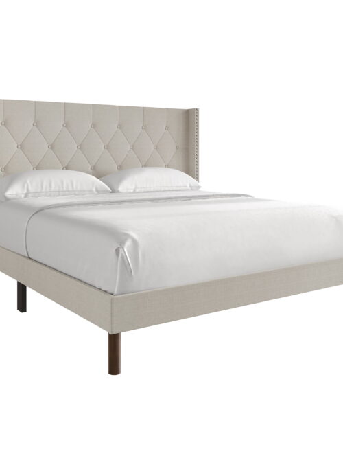 Zinus Dori 42″ Upholstered Platform Bed with Wingback Headboard, King