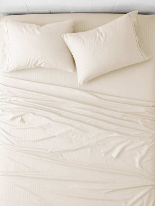 • Noble Linens 4 Piece Ivory Striped Embossed Bed Sheet Set, King