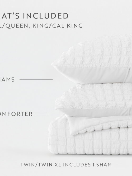 • Noble Linens 3 Piece Seersucker Textured All Season Down-Alternative Comforter Set, White, Full/Queen