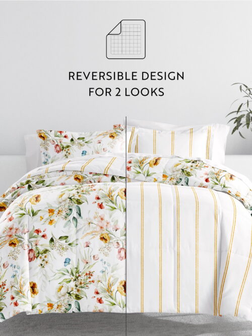 • Noble Linens 7 Piece Bedding Bundle, Microfiber Patterned Comforter and Sheet Set, Queen