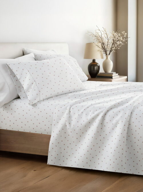 Noble Linens 4 Piece Ditsy Pattern Microfiber Bed Sheets, Pink Floral, Queen