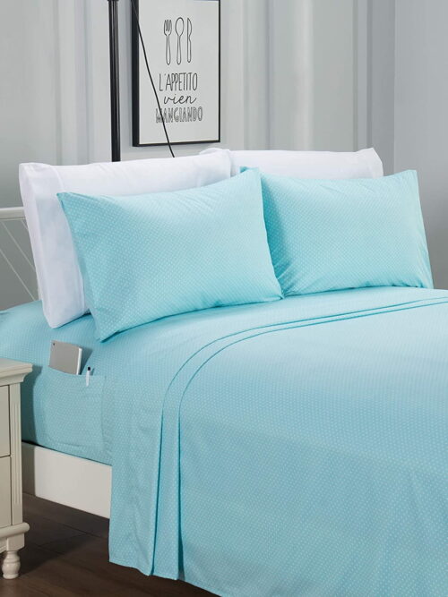 Celine Linen Series Microfiber 4-Pc Sheet Set Queen, Aqua