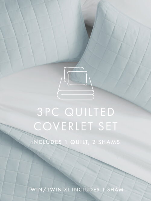 • Noble Linens Pale Blue Square Pattern Quilted Coverlet Set, Twin / Twin XL