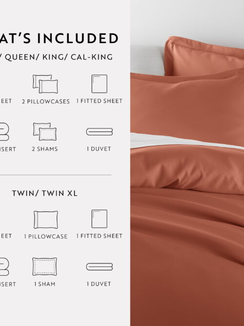 • Noble Linens 8 Piece Solid Duvet Bundle in Clay, Queen
