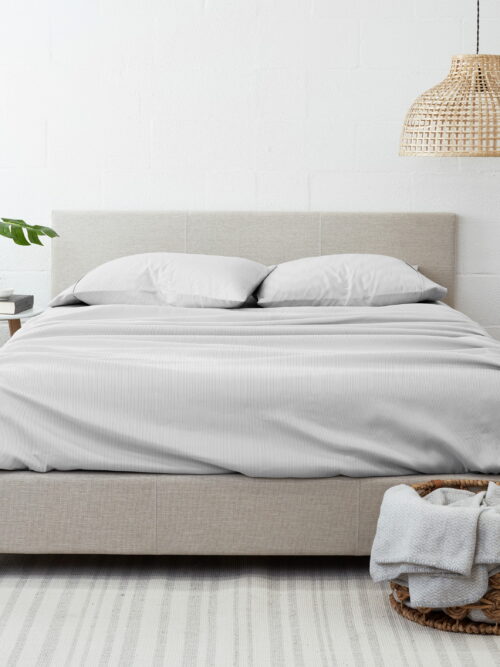 • Noble Linens 4 Piece Pattern Microfiber Bed Sheets Set, Light Gray Pinstriped, Queen