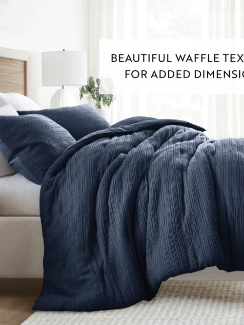 • Noble Linens 3 Piece Navy Waffle Textured All Season Down-Alternative Comforter Set, Full/Queen